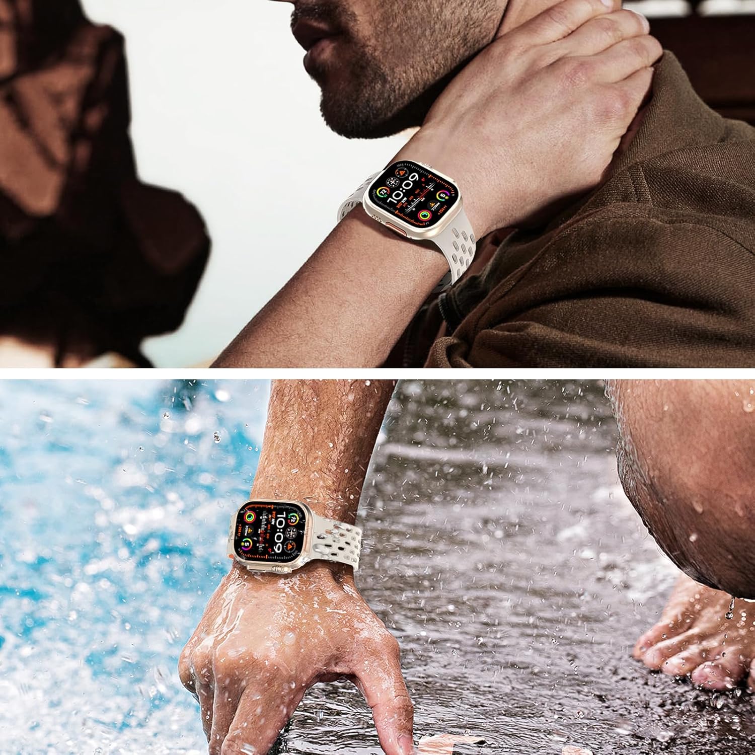 • [Elastic Silicone] This Apple Watch Ultra 2 Band wristband adds high elastic rubber to make it soft and elastic, skin-friendly and comfortable to wear, no irritating odor, no fading, skin-friendly, lightweight, waterproof, sweat-proof and durable, dust-proof, easy to clean, and does not cause allergies.